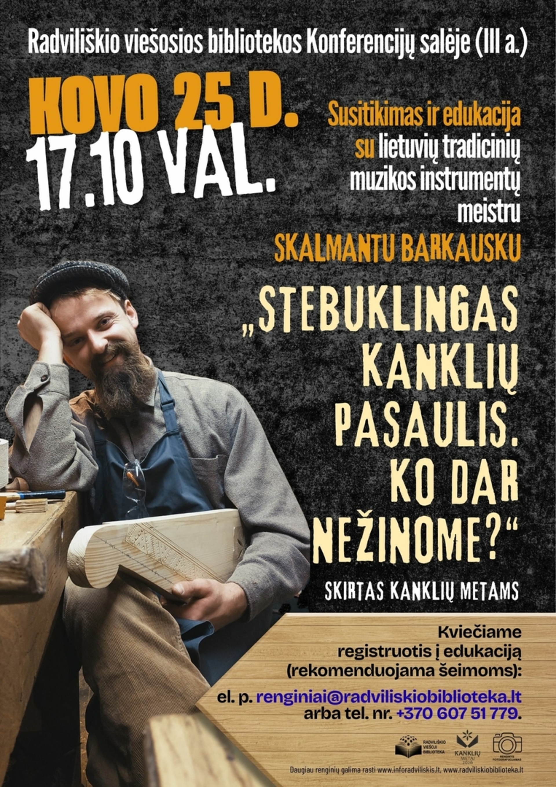 SUSITIKIMAS IR EDUKACIJA SU LIETUVIŲ TRADICINIŲ MUZIKOS INSTRUMENTŲ MEISTRU SKALMANTU BARKAUSKU „STEBUKLINGAS KANKLIŲ PASAULIS. KO DAR NEŽINOME“