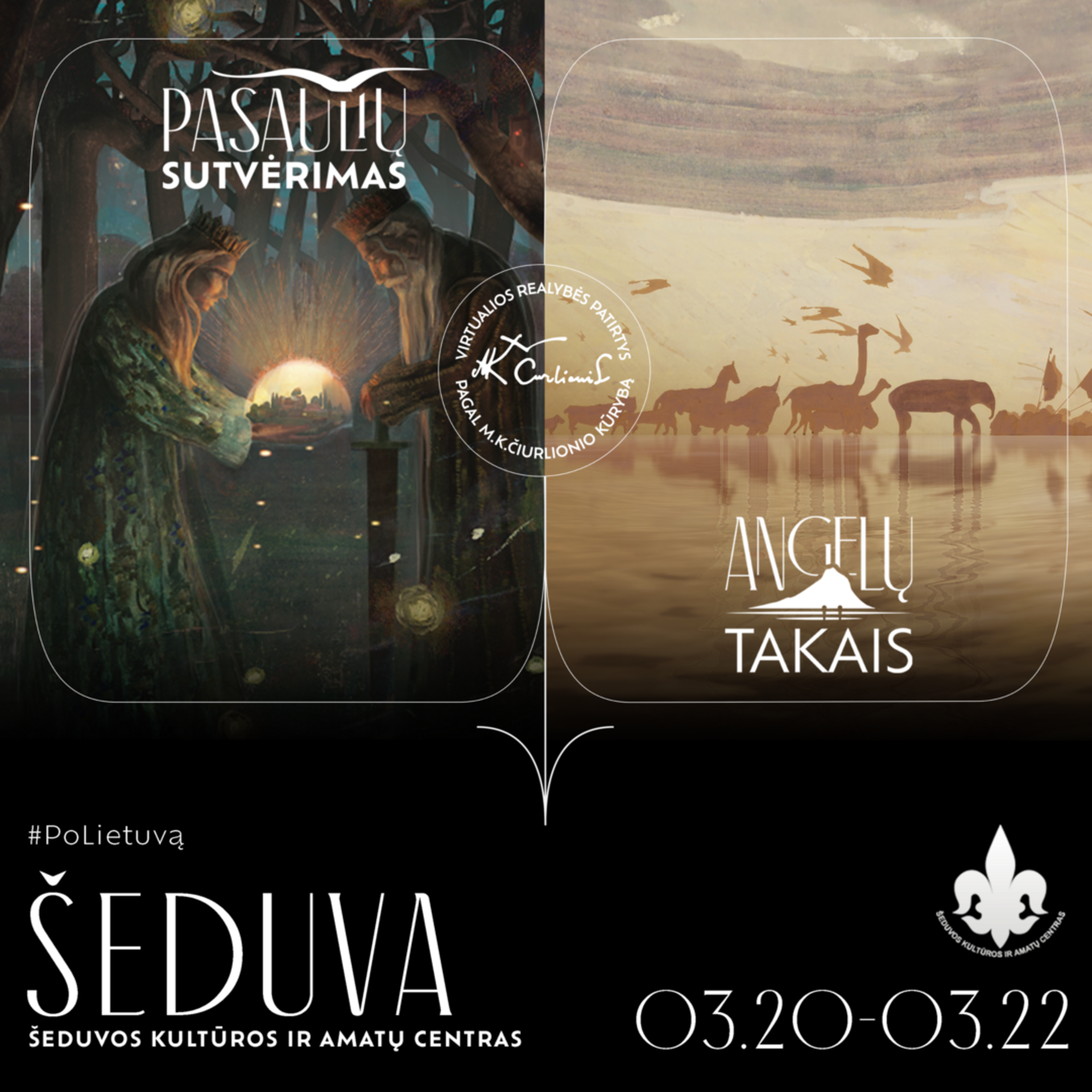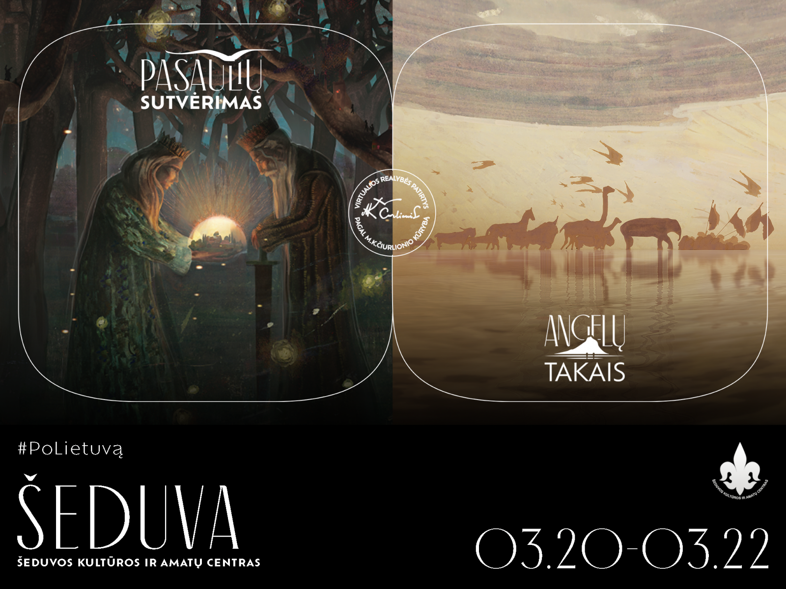Virtualios realybės patirtis „Angelų takais“ kviečia VR erdvėje leistis į pažintį su 60 tiek labai žinomų ir lengvai atpažįstamų, tiek rečiau matomų M. K. Čiurlionio paveikslų: „Ramybė“, „Angelėliai“, „Aukuras“, „Angelas“, „Žinia“, „Saulė“.