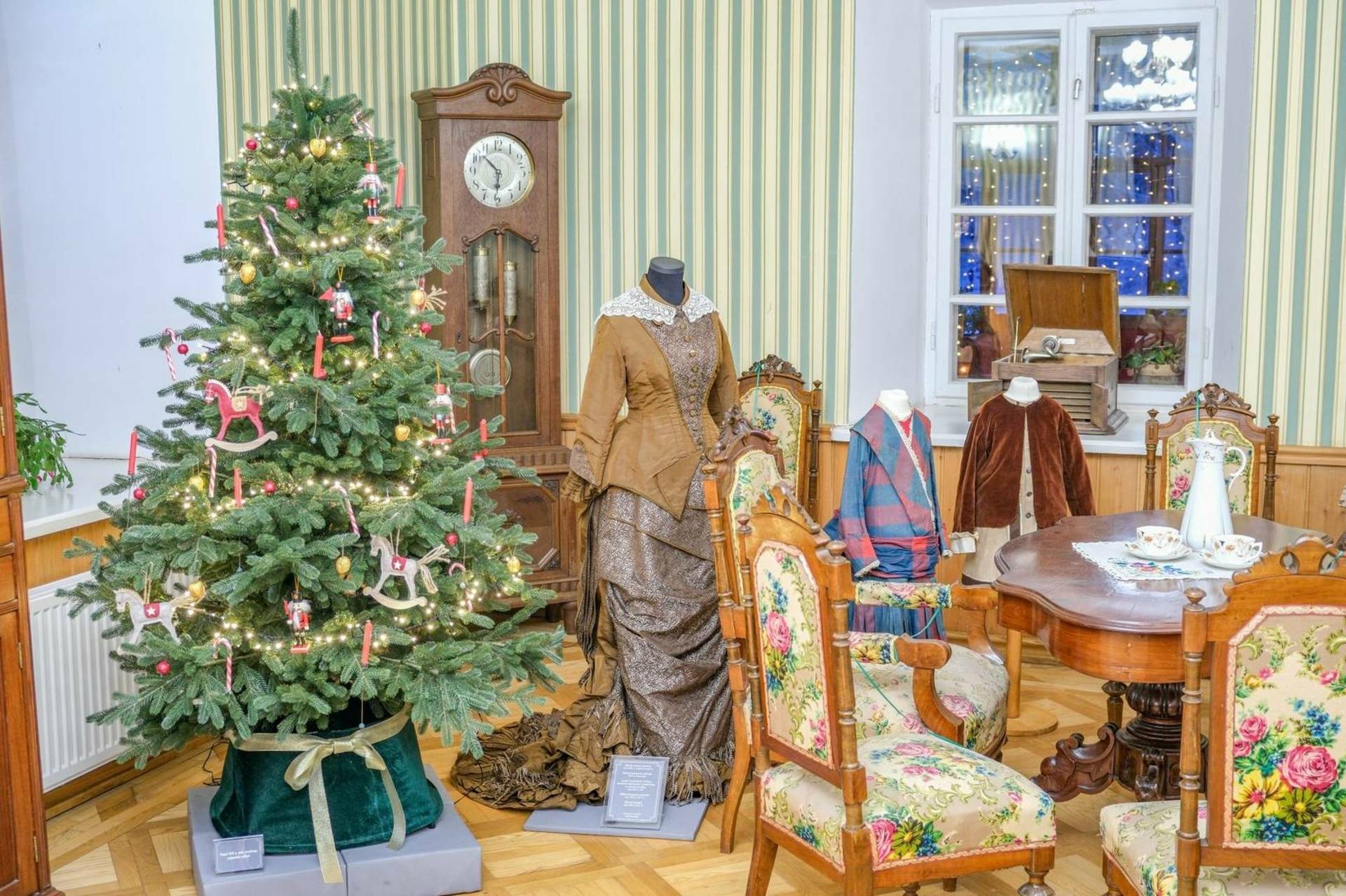 Lankytojai sužinos apie Kalėdų tradicijas dvare, išvys įspūdingas kolekcijas: beveik 700 lietuviškų kalėdinių ir naujametinių atvirukų, vokų, daugiau nei 1 200 įvairiose šalyse pagamintų senųjų žaisliukų. Žaisliukų ir atvirukų amžius siekia XX a. pradžią – 9 dešimtmetį. Žaisliukų parodą papildo XIX a. pab. – XX a. 4 deš. karnavaliniai bei šventiniai kostiumai iš Aleksandro Vasiljevo fondo kolekcijos, ikonografinė medžiaga.